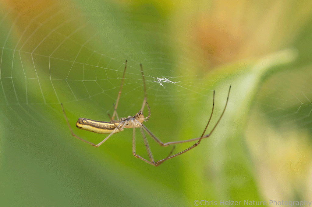 I’ve seen several long-jawed orb weavers on webs. Last week, though, I got to watch one of them spin a web right in front of me. The process was impressively brief. It seemed to take only a few minutes between the spider laying out some support strands and putting the last touches on a fully-formed web. I really enjoyed watching the final stages when the spider was quickly spinning around with its head toward the center of the web and its spinnerets (toward the tail end of its body) facing outward.