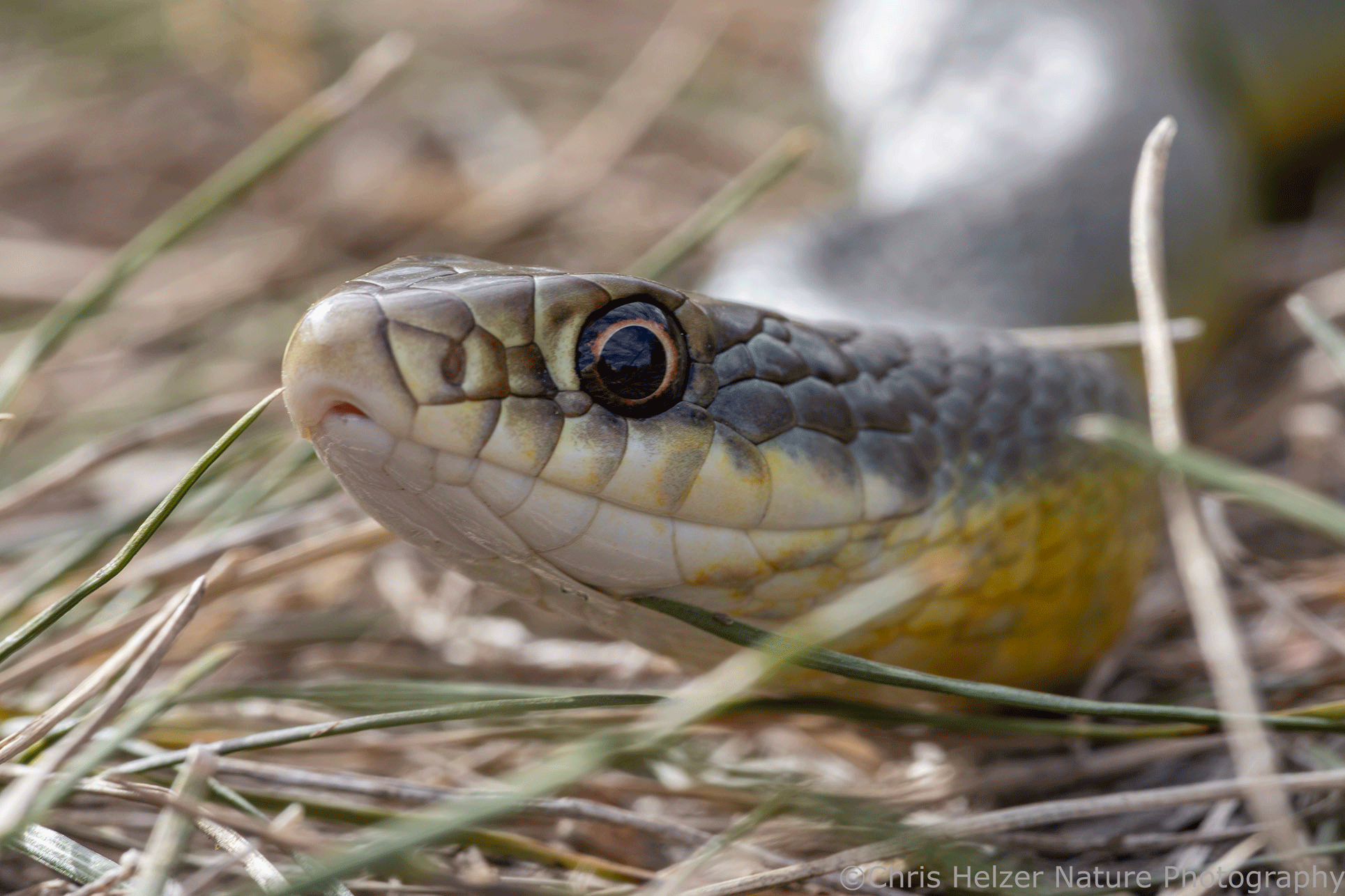 Eastern racer snake basking on a trail on a warm November afternoon at Lincoln Creek Prairie, Aurora, Nebraska. Canon 180mm macro lens. ISO 400, f/16, 1/60 sec.Eastern racer snake basking on a trail on a warm November afternoon at Lincoln Creek Prairie, Aurora, Nebraska. Canon 180mm macro lens. ISO 400, f/16, 1/45 sec.