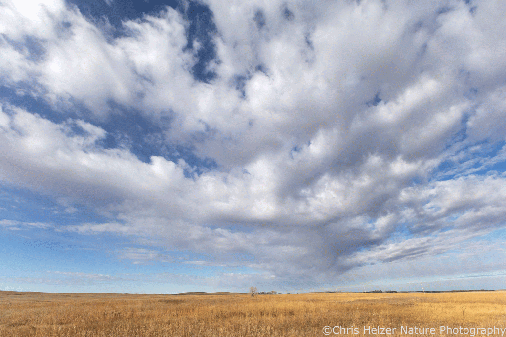 Clouds and prairie on a windy day at the Seier National Wildlife Refuge in the Nebraska Sandhills. Canon 15-30mm lens@15mm. ISO 1600, f/9.5, 1/3000 sec.