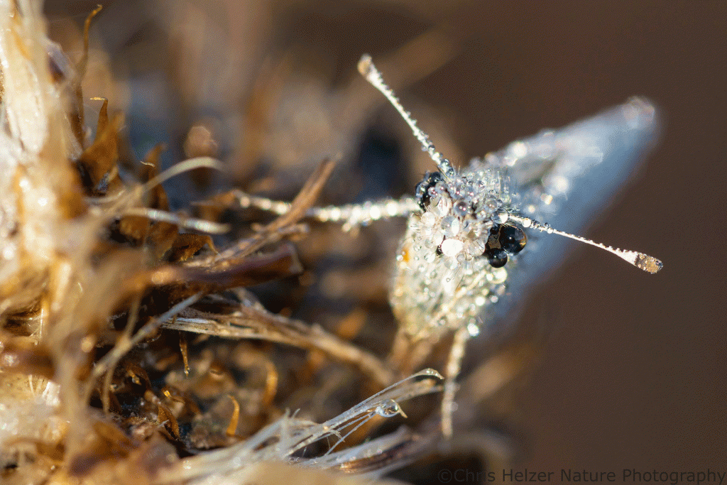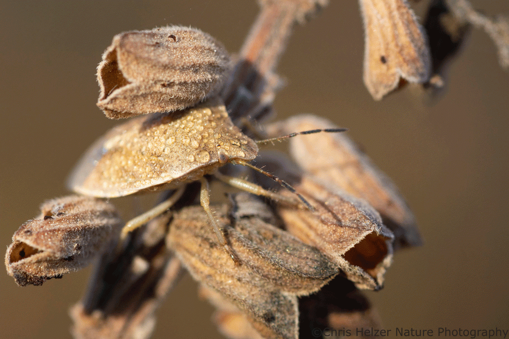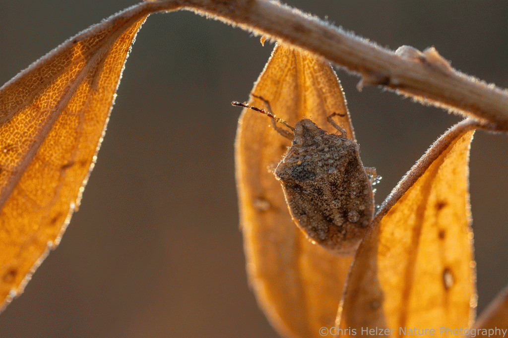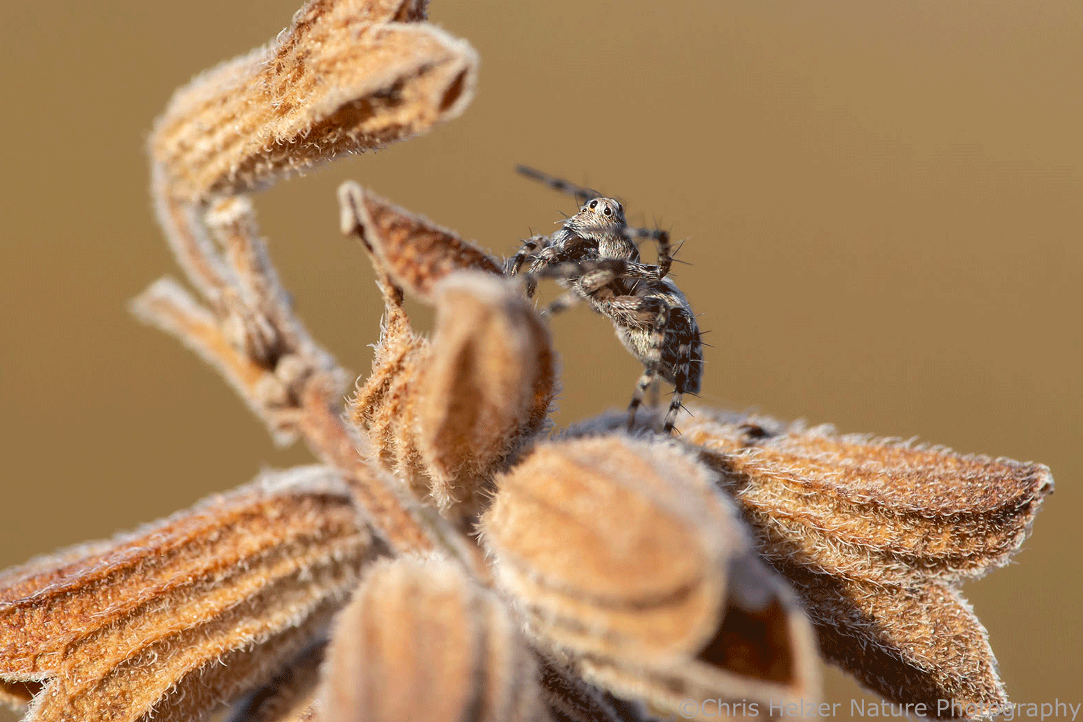 There are insects and spiders active all winter, but not very many. Every time I go out this fall, I see fewer and fewer. This is a challenging time of year for photography, at least for the kinds of subjects I like best. In addition to a drop in insect numbers, the color of vegetation is fading from gold to a duller brown and there’s no been no snow yet, and precious little frost.
