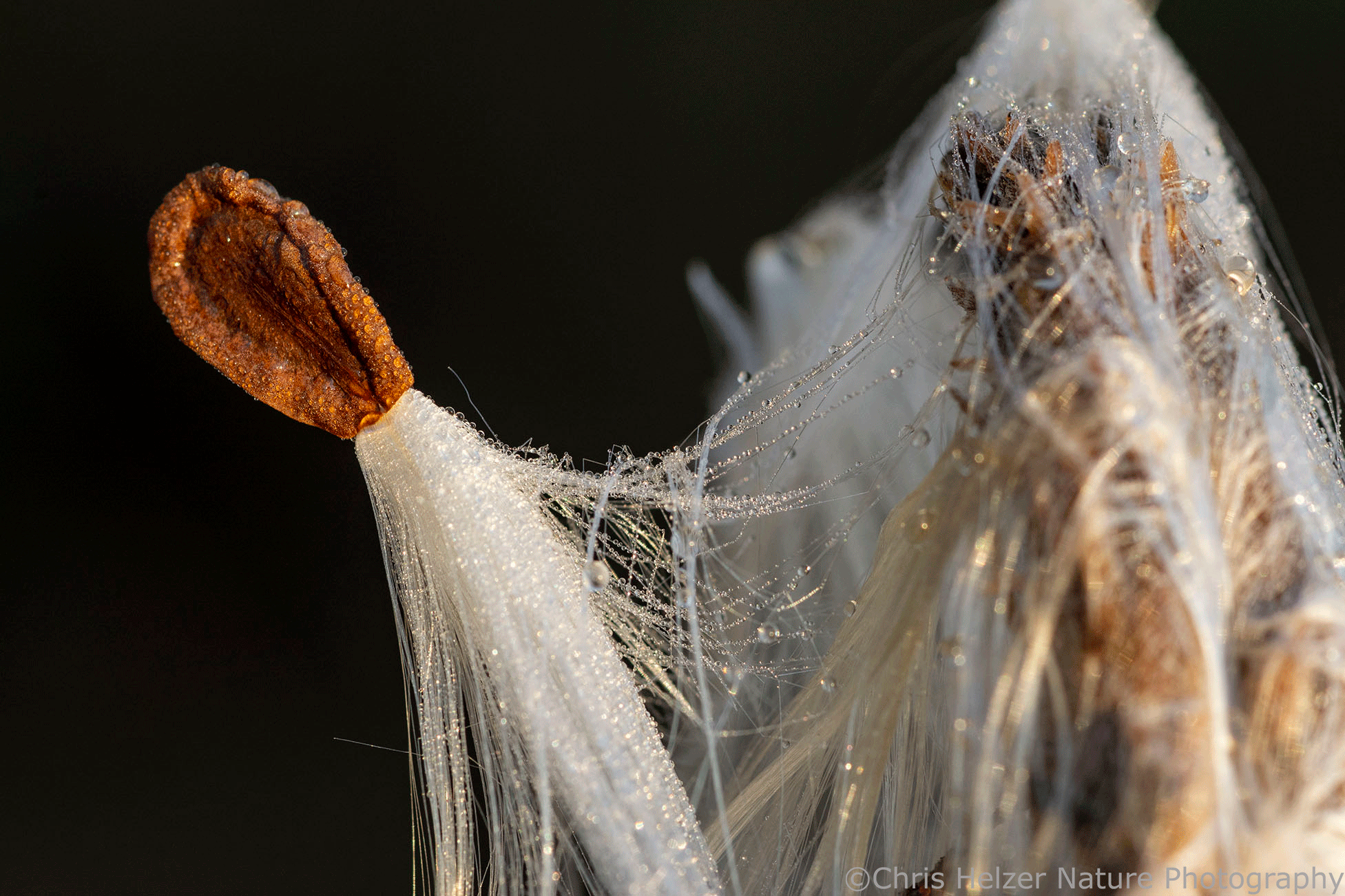 Common milkweed seed and morning dew. Nikon 105mm macro lens. ISO 500, f/13, 1/100 sec.Canada goldenrod (Solidago canadensis). Nikon 105mm macro lens. ISO 500, f/11, 1/160 sec.Canada goldenrod (Solidago canadensis). Nikon 105mm macro lens. ISO 500, f/9, 1/800 sec.Canada goldenrod (Solidago canadensis). Nikon 105mm macro lens. ISO 500, f/9, 1/800 sec.Wild lettuce (Lactuca sp.) Nikon 105mm macro lens. ISO 500, f/14, 1/160 sec.Lead plant (Amorpha canescens). Nikon 105mm macro lens. ISO 500, f/10, 1/500 sec.