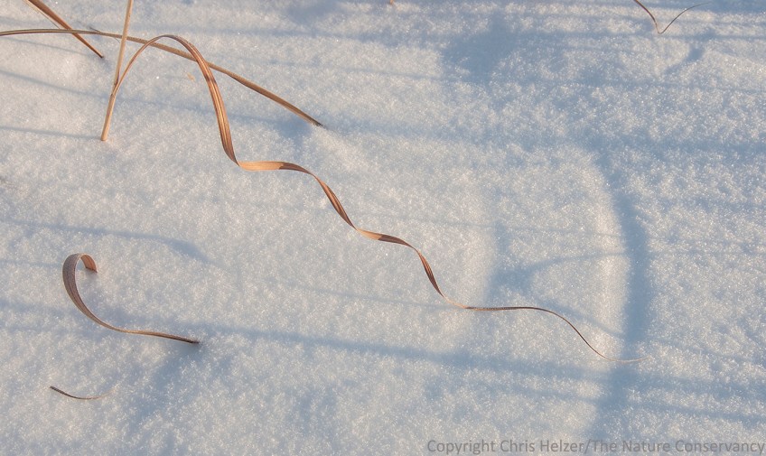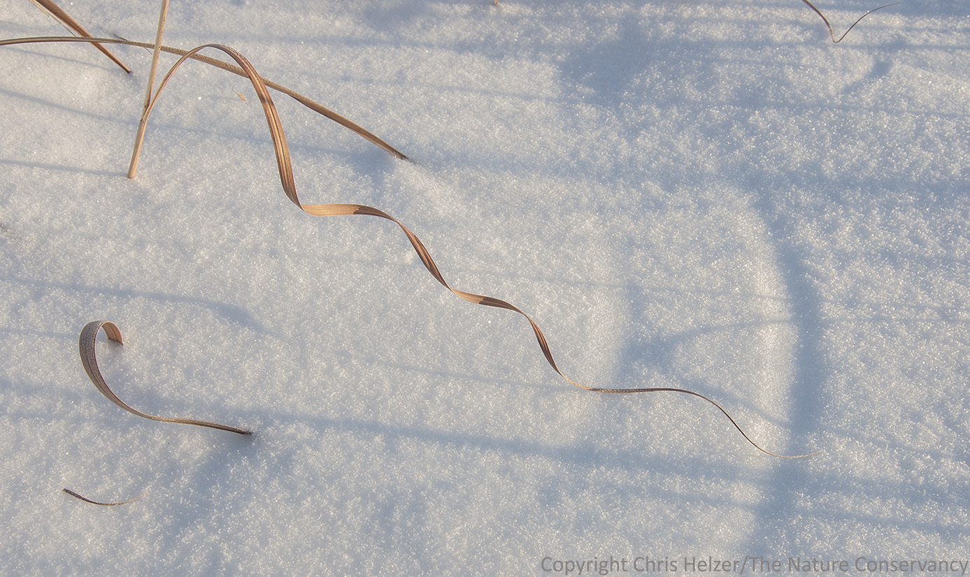Grass and snow. Lincoln Creek Prairie. Aurora, Nebraska.