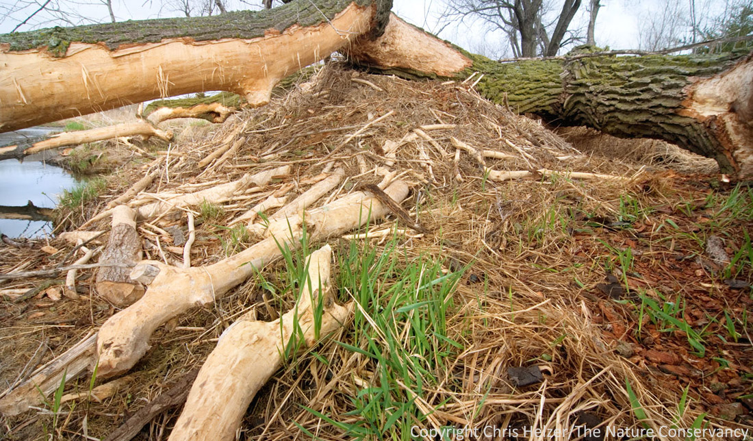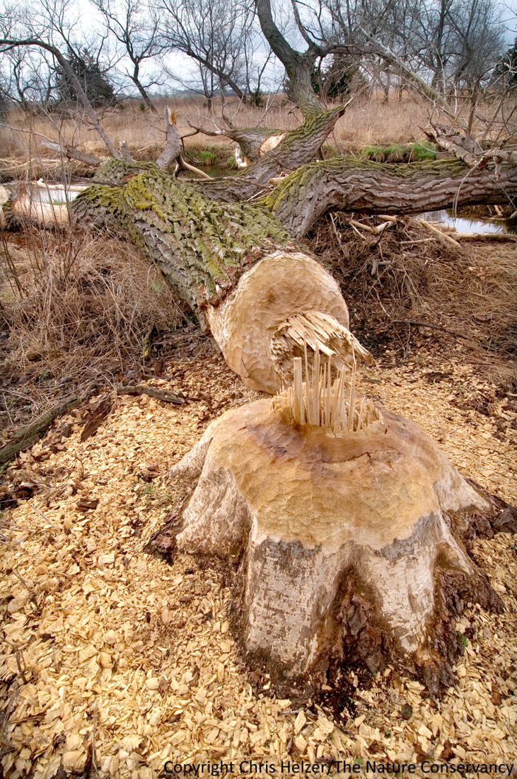 This week, I had some time to walk along the creek that runs through our Platte River Prairies. As I was walking, I found this big cottonwood tree that had fallen over and subsequently had most of the bark stripped off its branches. Clearly there were beavers at work. I was particularly drawn to the end of one large branch that had been chewed in an odd way. No, I don’t think it was done to be artistic, but I can’t actually come up with a logical scenario that explains it either. Accidental art?