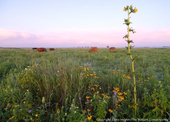 Because grassland birds can live comfortably in grasslands made up of a few native grasses, or even non-native grasses, they are poor indicators of the impacts of most invasive species – a major threat to prairies. Similarly, broadcast herbicide use that greatly reduces the number of plant species in a prairie has little impact on the grassland birds nesting there. Finally, a prairie that is being overgrazed would certainly have different bird species than one that is not being grazed at all, but a prairie that was chronically overgrazed for decades – and then managed well again – would have a pretty low number of prairie wildflower species but a very nice-looking grassland bird community.