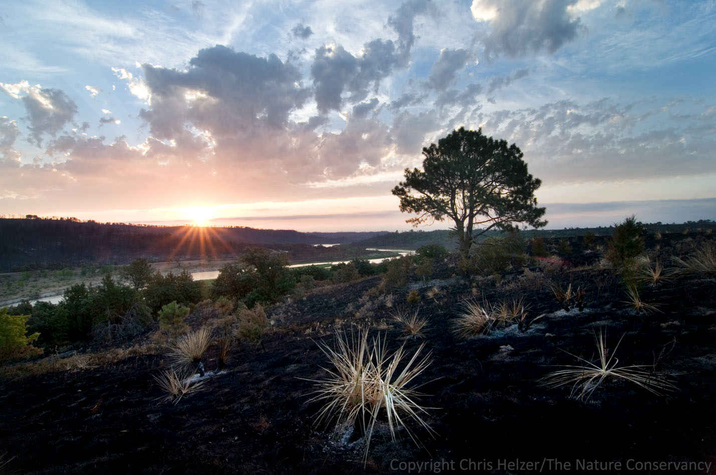 On my last trip to the Niobrara Valley Preserve, I photographed the bark of wildfire-killed pine trees in warm late day light. I liked both the patterns and the color and was just trying to make some visually-interesting images. As I was taking the photos, I saw numerous small holes in the trees but didn’t think much about them. Holes in dead trees are not really unusual, after all. Upon looking at the photos later, however, I noticed something intriguing – many of the holes seemed to have a funnel shape, or beveled edge, at the surface of the tree.