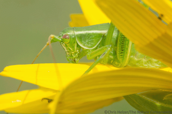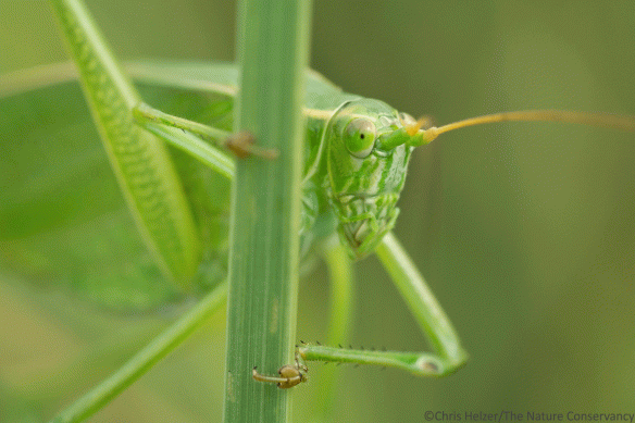 Crickets and katydids, including bush katydids, provide much of the evening sound in prairies. There are many websites that feature those sounds, but here is one that is set up pretty well to help you distinguish between the various species. If you can’t find them by sight, maybe you can at least find them by ear!