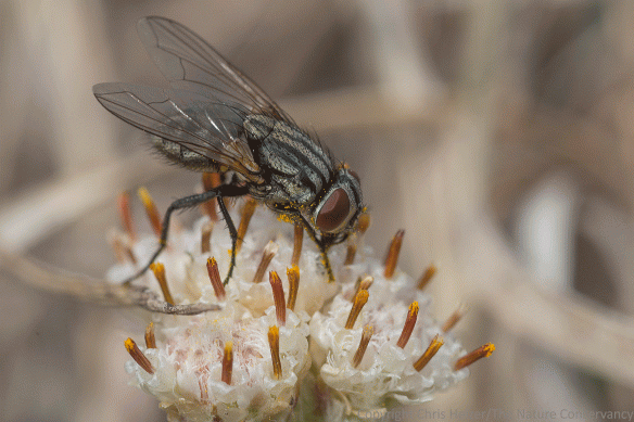 Several different small bee and fly species were feeding on the pollen of the anemone plants last weekend, including the gorgeous little Lasioglossum species shown above. I’m guessing the anemone is a very welcome resource for those early-season pollinators. Carolina anemone makes its pollen easy to access, and when you find one plant, there are usually quite a few more right next to it. That’s pretty handy for a hungry bee or fly searching for something to eat across a still-mostly-brown prairie landscape.