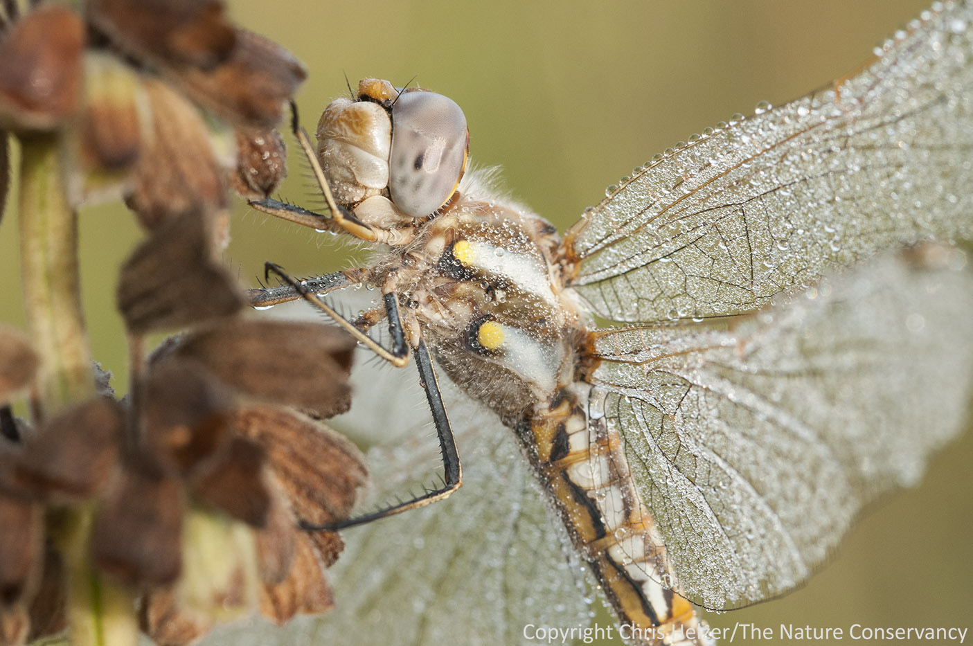 If found this dragonfly encased in dew a couple weeks ago as I walked through a small prairie here in Aurora. I’m sure someone reading this will be able to tell me what species it is – I don’t know my dragonflies very well.