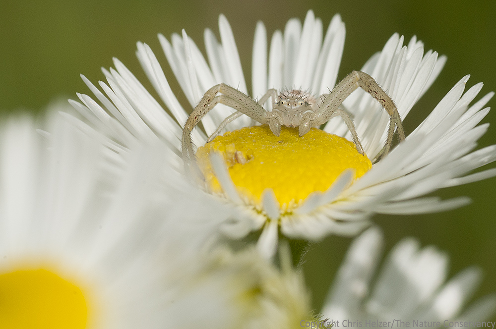 Last Friday evening, I took my camera for a walk in a small prairie here in town and found quite a few daisy fleabane plants growing along the trail. I wasn’t the only one enjoying them – I saw numerous small bees and flies feeding on the pollen, and a few crab spiders hoping one of those pollinators waiting to ambush those same small pollinators.