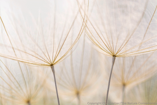 The seed was barely attached to the flower in one place, and a gentle breeze caused the seed to slowly rotate around on that fulcrum. In my head, I had only a vague concept of the image I was trying to capture. There was something about the fuzzy, webby texture of the seed and the strong vertical arrangement of the flower stalk, but… As the seed shifted around, I just snapped away – kind of like trying to refine an idea by just talking it out.