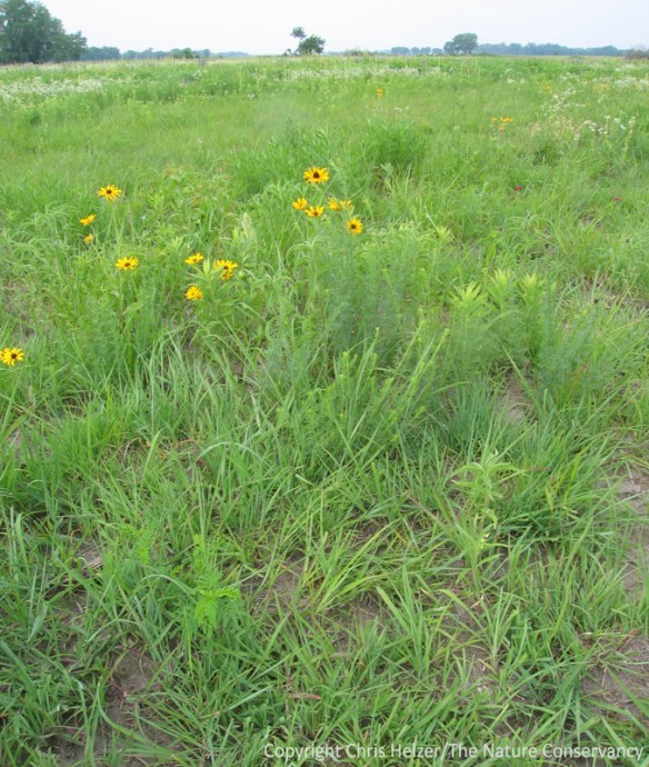 As I said in my previous post on grazing, I’m not advocating that all prairies need to be grazed. I’m not even advocating grazing as the solution to all prairies that suffer from overly-dominant grasses. However, as we search for answers to address grass suppression of plant diversity, grazing certainly appears to be one viable alternative that is worth more investigation. I’m continuing to experiment with variations in the way we employ fire and grazing treatments, and will keep learning as I go. I’m also combining seed additions with those grazing treatments to see if I can take advantage of the open space created by defoliation to help establish new plants from seed – something that appears to happen rarely without some kind of suppression of surrounding vegetation. I’m seeing some positive results, but it’s too early to know how well it will work long-term, and I’m still tweaking seeding rates and other factors.