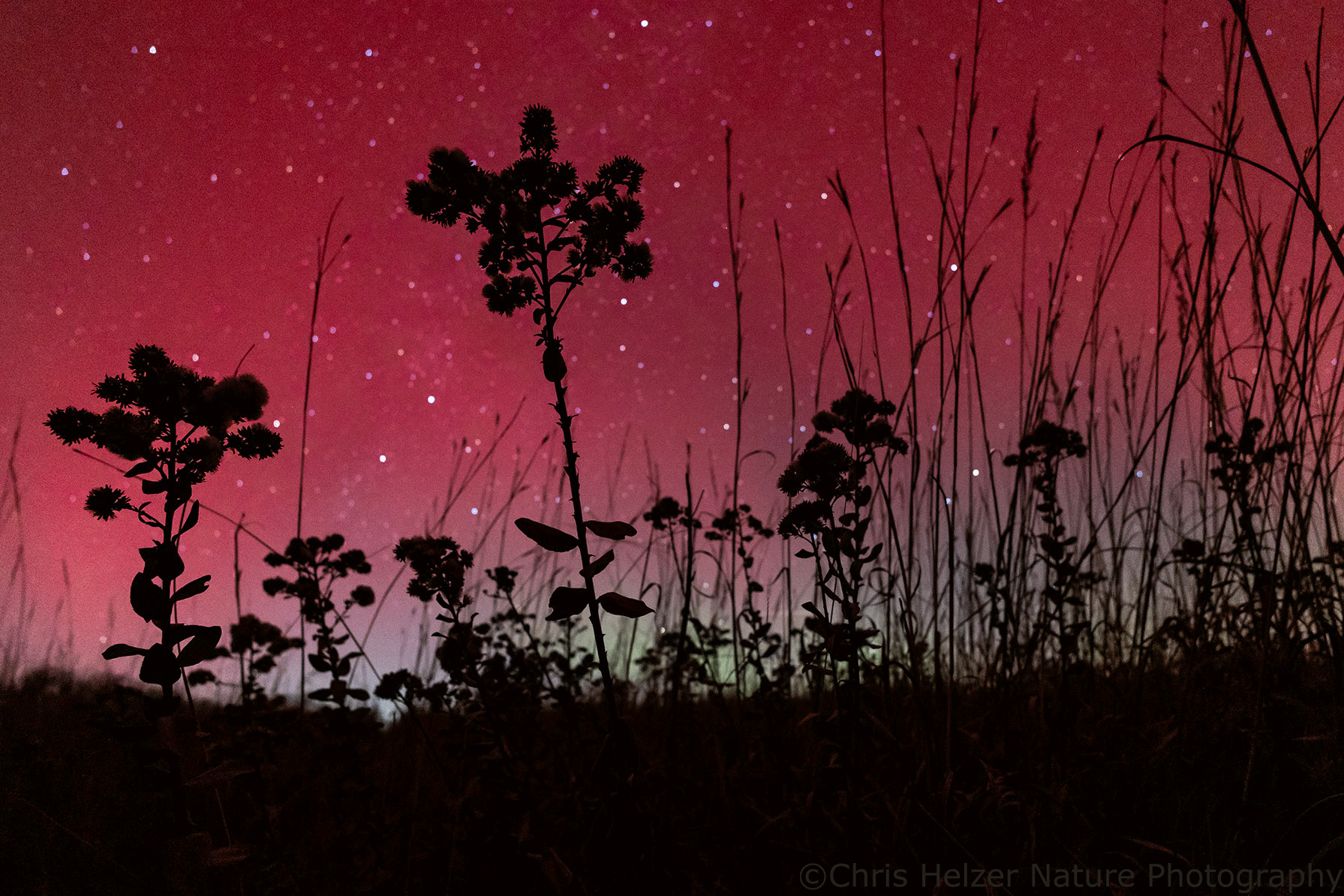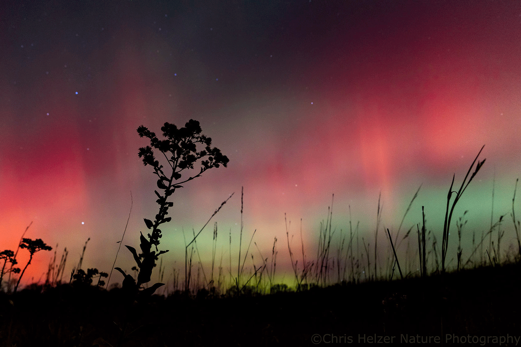 Stiff goldenrod and the Aurora Borealis, just south of Aurora, Nebraska