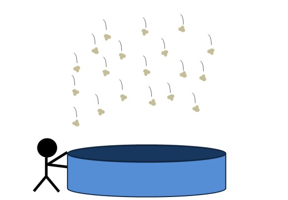 It's much easier to catch falling popcorn (conserve prairie species) with a wading pool (large prairie) than with a coffee cup (small prairie).