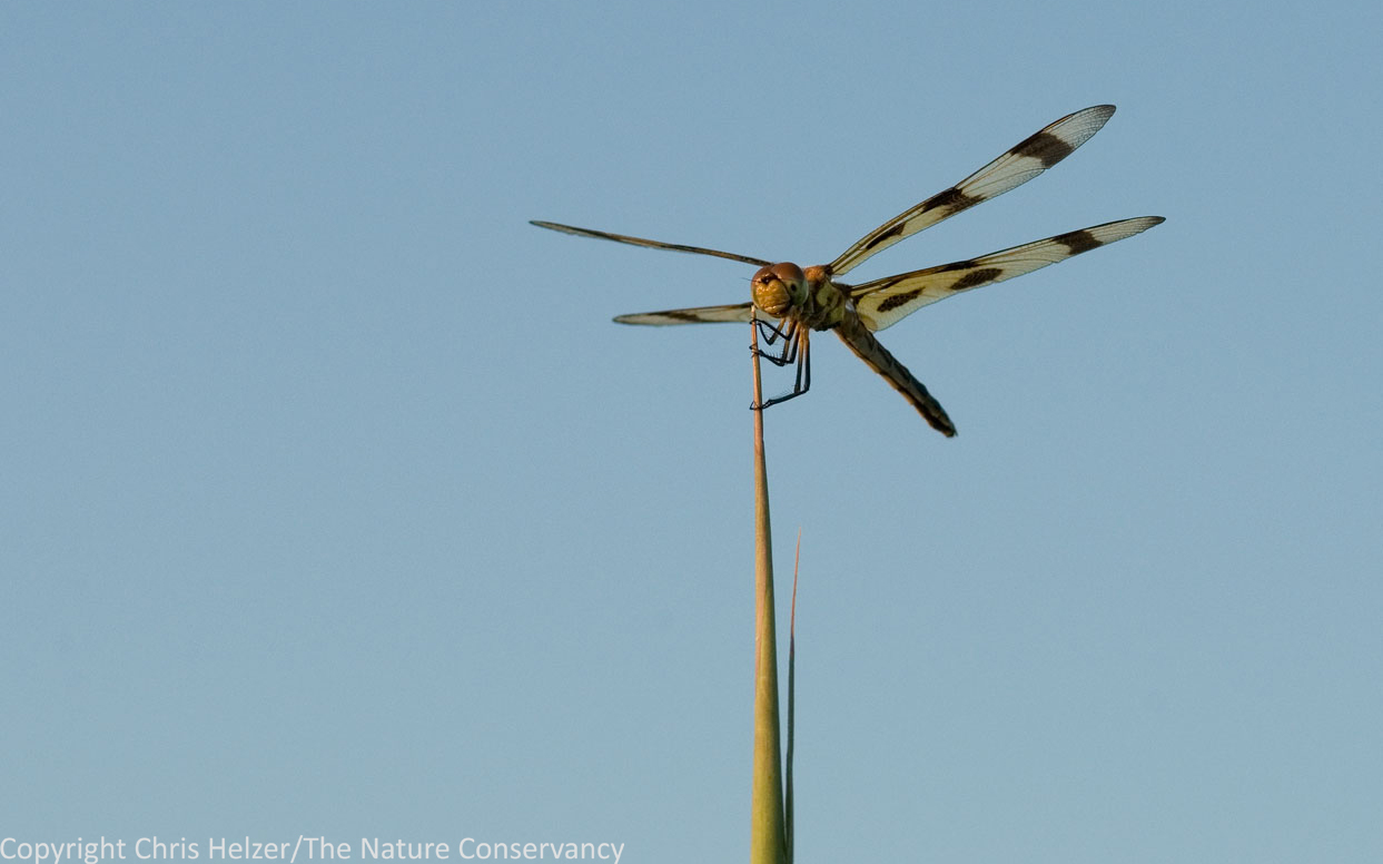 While the diversity of insects in a prairie is strongly tied to plant diversity, grassland birds have no such relationship. The species richness, abundance, and breeding success of grassland birds are mainly related to variables such as vegetation structure, habitat patch size, and the amount of grassland in the neighborhood around their nesting sites. At Kankakee Sands, the 6,000 acres of restored prairie/wetland habitat are obviously increasing both the patch size and total amount of grassland in the neighborhood, so our discussions focused on vegetation structure. The ideal situation, of course, is to have a diversity of vegetation structure scattered across the site so that all grassland bird species can find the habitat they require for nesting.