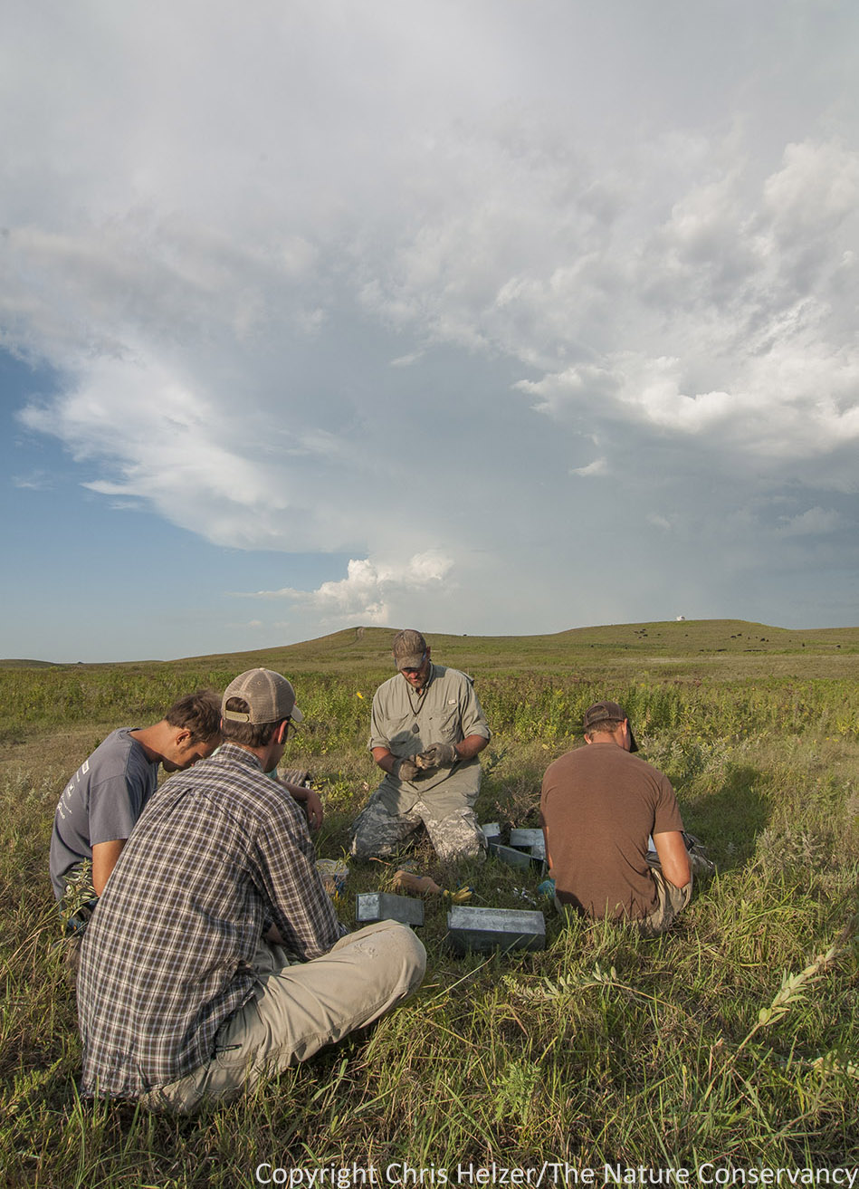 We had two main reasons for our trip to Konza. First, our two Hubbard Fellows, Jasmine and Dillon, are designing research projects on small mammals and grasshoppers, respectively, and wanted to learn from Kansas State researchers on those topics. Second, researchers from Konza Prairie have produced some of the most important grassland science there is, and we wanted to learn as much as we could by touring the site with some of those researchers.