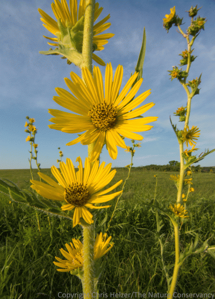 Few of our prairies in central Nebraska have compass plant – we’re on the far western edge of its range. It’s too bad. Compass plants add a great architectural structure to prairies that the sunflowers and other tall plants in our prairies don’t quite achieve.