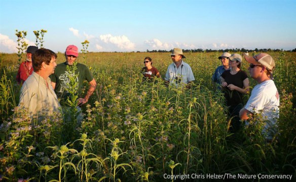Grassland Restoration Network workshop participants discuss restoration strategy in a restored Nebraska prairie in 2009.