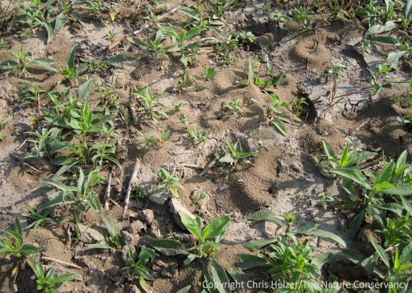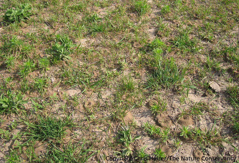 Ant hills in a 5-year-old prairie seeding about 2 weeks after flooding.