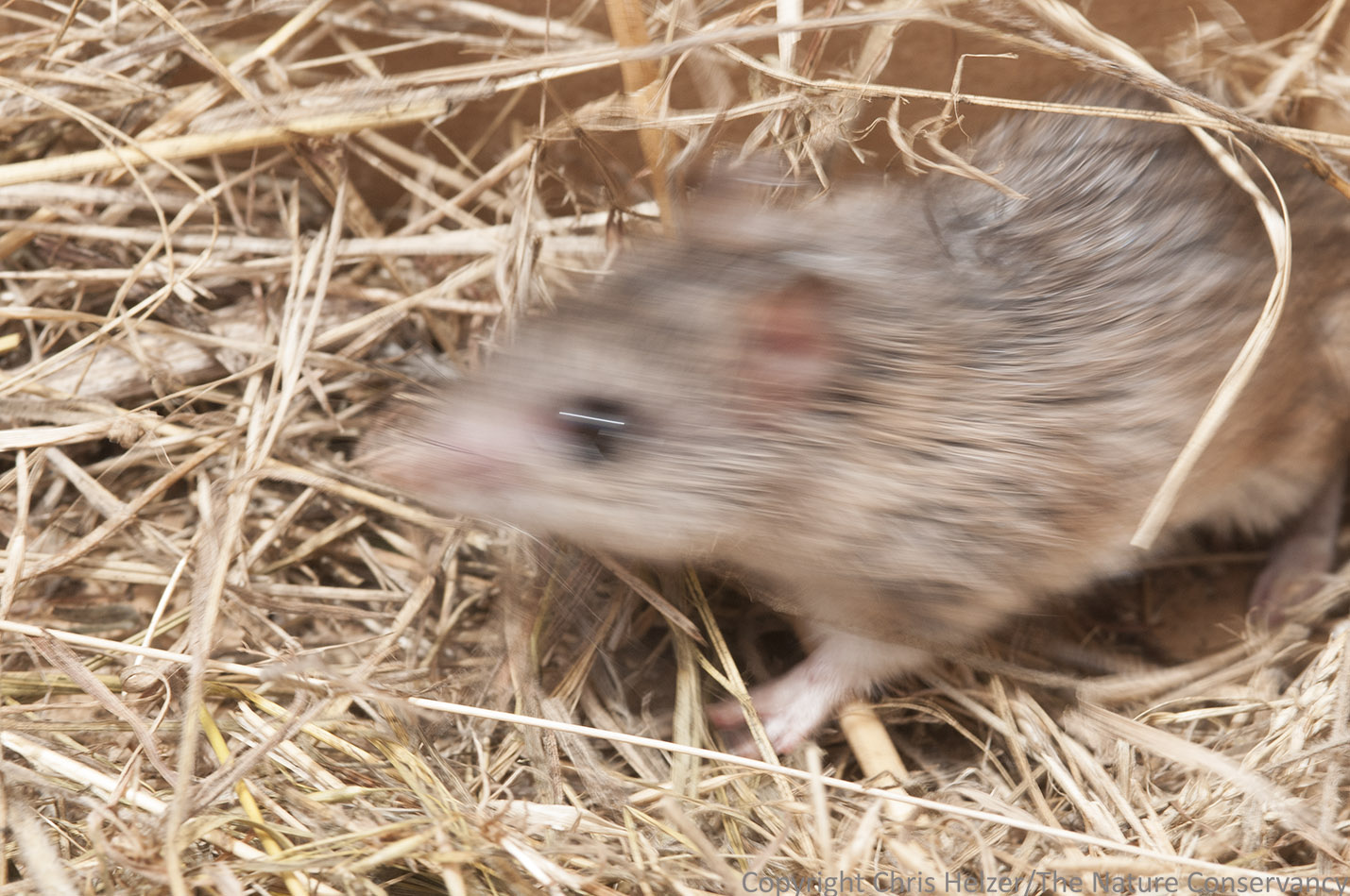 The plains pocket mouse (Perognathus flavescens). So Cute! Notice the small eyes, small ears, and white dot under the ear. Top tends to be brown/buff-colored, with a yellowish line along its side and a white underbelly. Photo by Chris Helzer