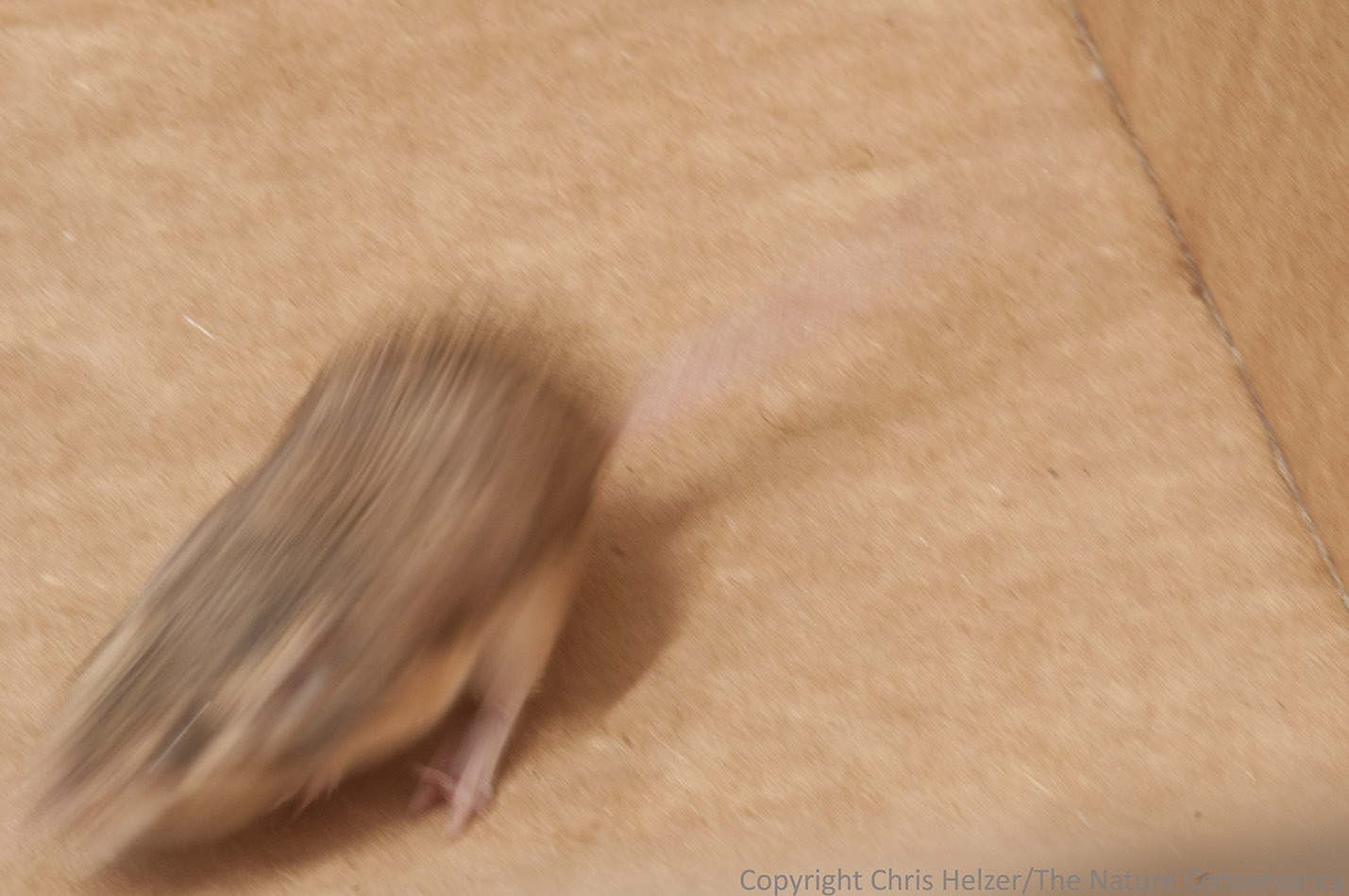 These adaptations help the plains pocket mice go for six weeks without water! Most of the moisture they need is obtained from seeds and their kidneys are extremely efficient. Furthermore, their habits also lend to water conservation; pocket mice spend most of the day underground in burrows where it’s cooler and more humid, they plug their entrance holes to keep in moisture (and keep out predators), and they can change slow their metabolism (enter torpor) when it’s too hot or too cold.