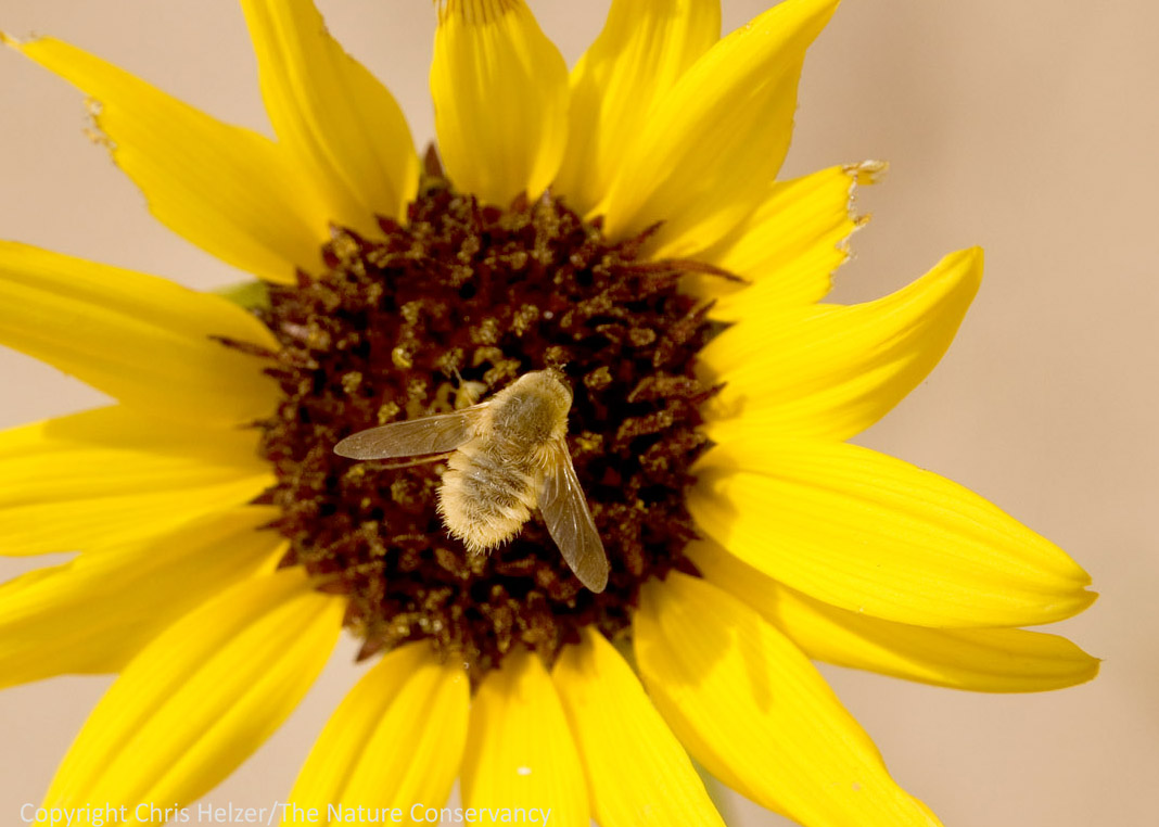 Sunflowers are seen by some people as big beautiful flowers, and by others as big ugly weeds. Regardless of aesthetic opinions, however, sunflowers appear to be pulling their weight, and more, in the ecology of the Nebraska sandhills prairies this year. After a long dry year, there’s not much green, let alone blooming, in the sandhills right now. The biggest and most obvious exception is the plains sunflower (Helianthus petiolaris).