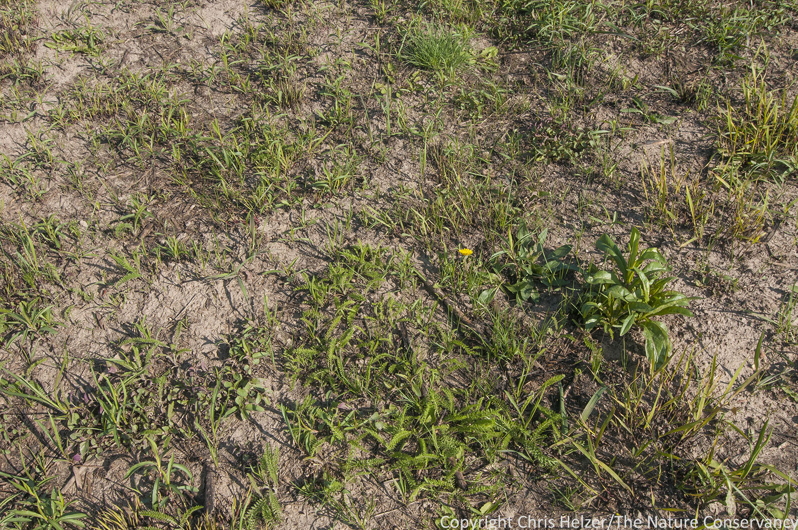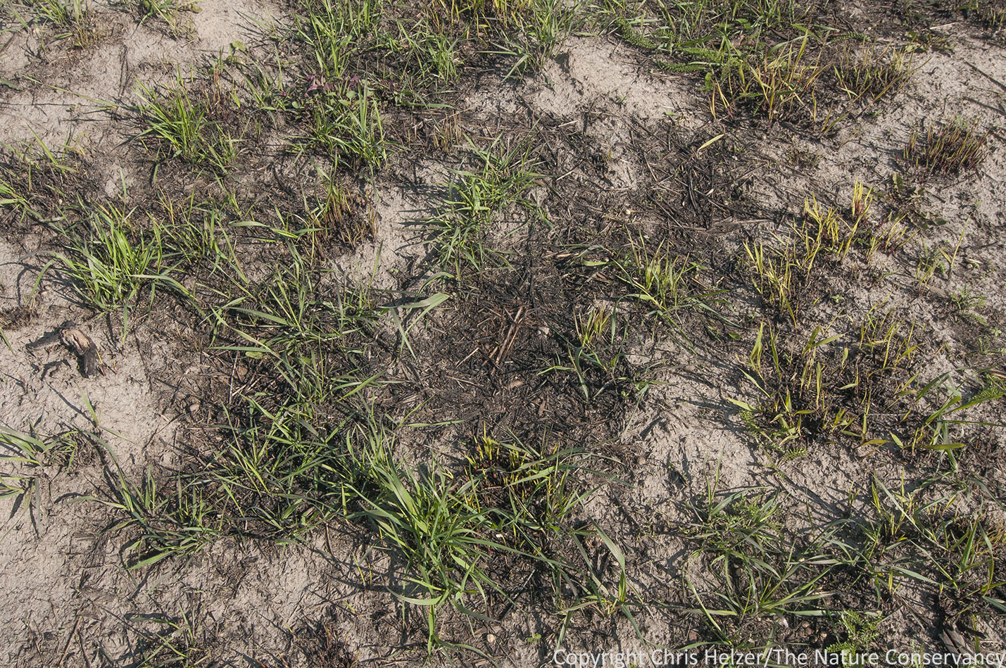 The monoculture plots were planted only with big bluestem, which was just barely starting to grow last week.