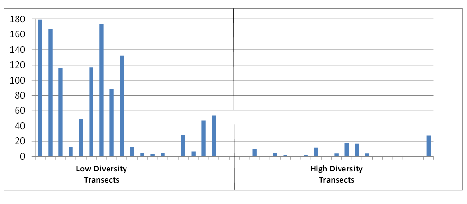 Dominant grass species can sometimes suppress prairie plant diversity by monopolizing soil and light resources. Two categories of prairies seem particularly vulnerable to this: 1) prairies that have been degraded by chronic overgrazing or broadcast herbicide use, and 2) restored (reconstructed) prairies. In Nebraska and Iowa, dominant grasses can include non-native invasive species such as smooth brome (Bromus inermis), Kentucky bluegrass (Poa pratensis), tall fescue (Schedonorus arundinaceus), and reed canarygrass (Phalaris arundinacea), as well as native species such as big bluestem (Andropogon gerardii).