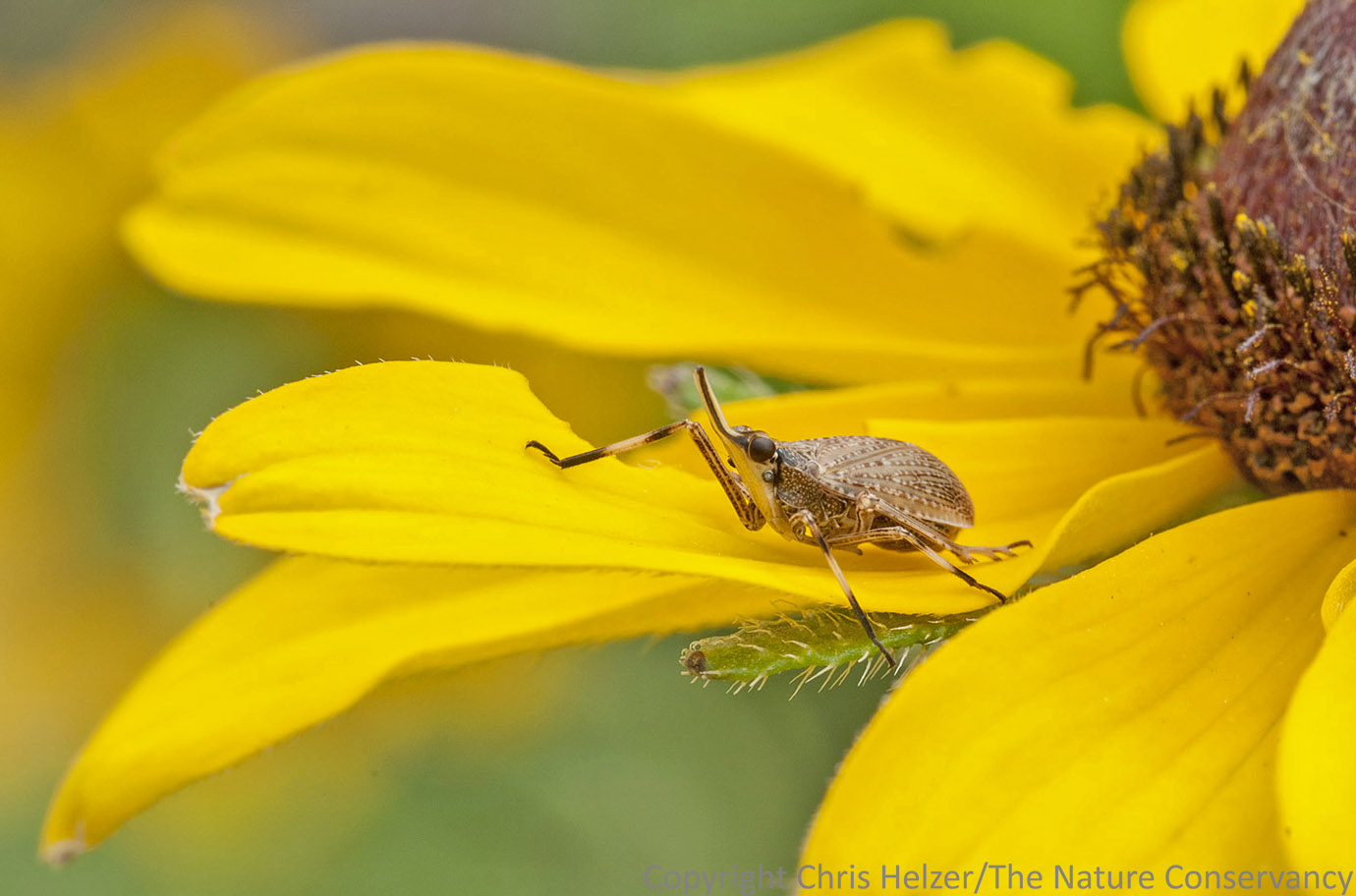 Derbid planthoppers are a very diverse group of insects with almost 1,700 species found around the world. According to a couple online sources, derbid nymphs feed on fungi. Adults feed on plants, and at least some are host-specific, meaning that they feed only on a single plant species or group of species. I would love to know if the derbid I photographed was a specialist feeder on one of the plants in my little plot. I would also love to know if the derbids I found in the plot in September and October were actually the same individual as the one from August. It seems unlikely – but probably more likely than a zombie fly.