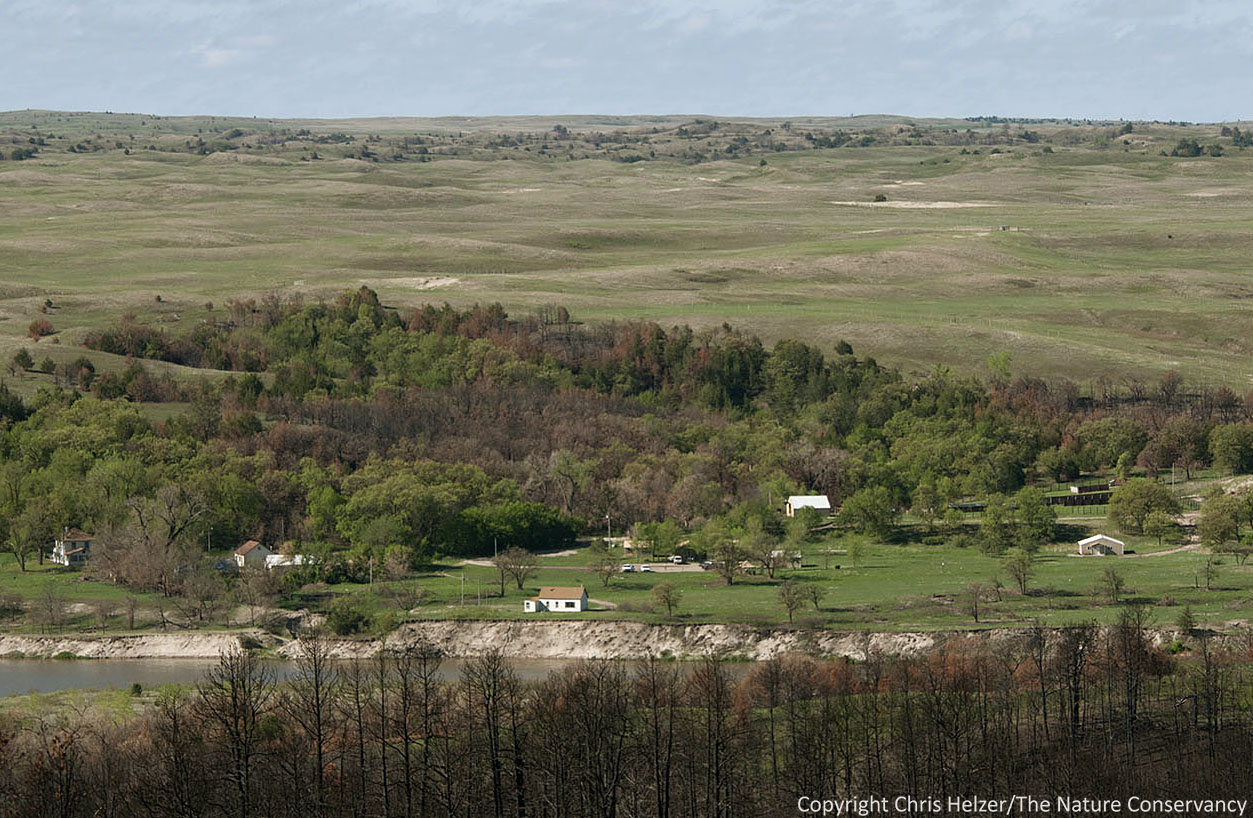 The headquarters of the Niobrara Valley Preserve with sandhills prairie behind. If it wasn’t for the ponderosa pine skeletons in the foreground, it would be difficult to know that a major wildfire had occurred last summer.