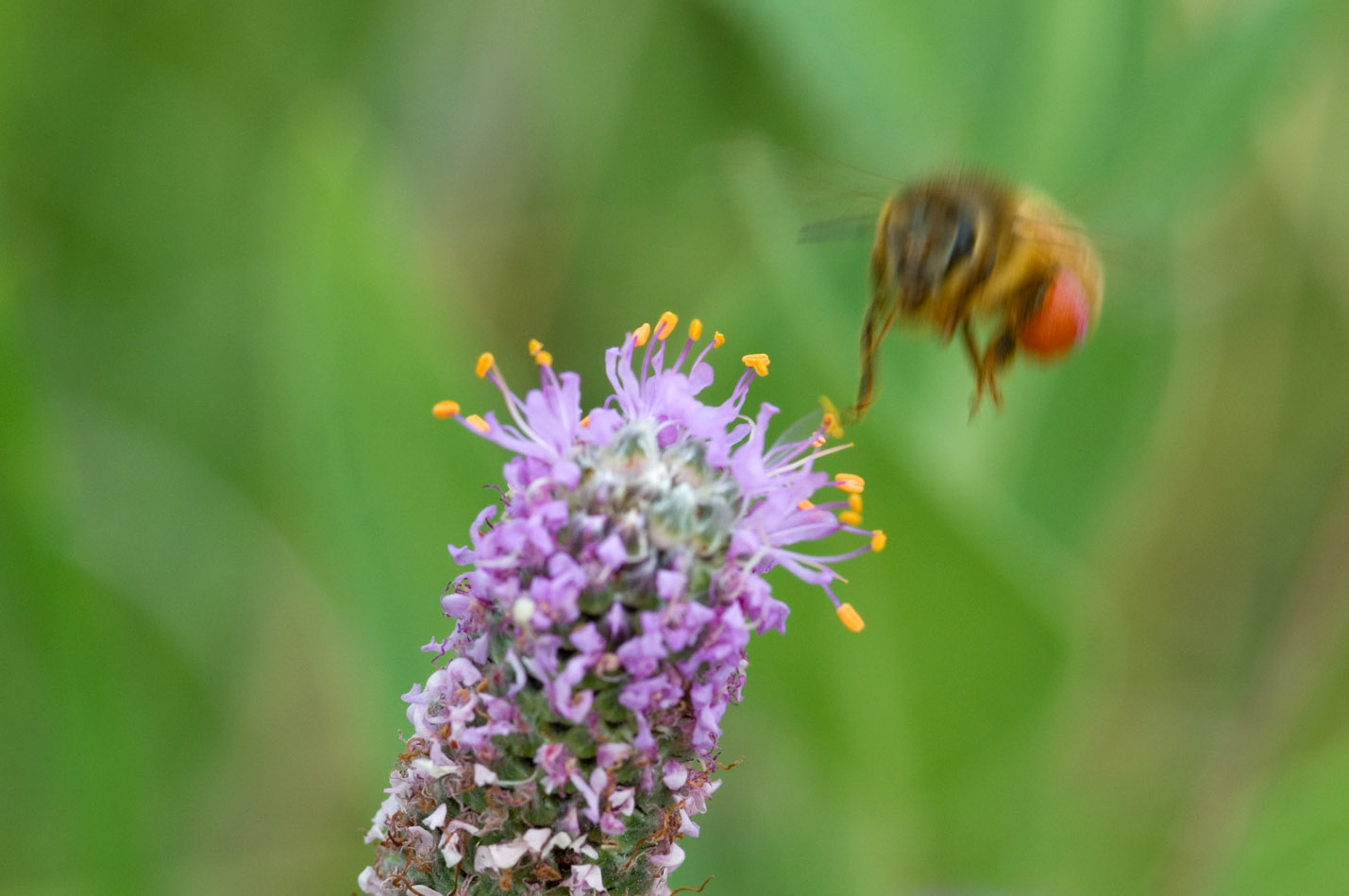 I’ve got lots of photos just like this from about 15 minutes of trying to get one stupid photo of a honey bee. There were hundreds of them buzzing around a big patch of prairie clovers, and they weren’t hard to get close to. They just never stopped MOVING.