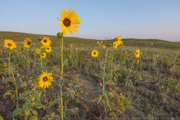 Plains sunflower, an annual, is a rapid colonizer of exposed in sandy prairies around Nebraska. The Nature Conservancy’s Niobrara Valley Preserve.