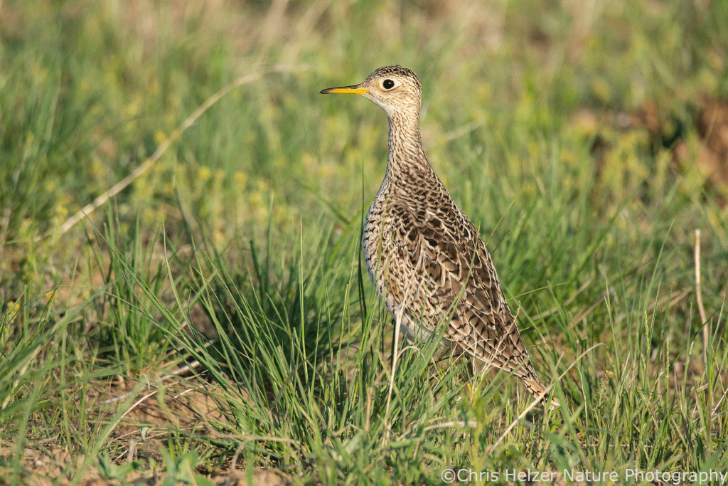 Upland sandpipers nest on the ground in large prairie patches with short, open habitat. They then take their young chicks into cover where the habitat is open enough the chicks can feed and move around easily, but there is overhead cover (especially broad-leaved plants) they can use to hide from predators and find shade.