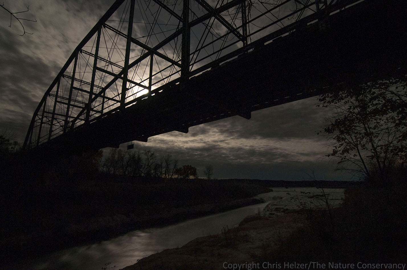 In addition to making time during the work day, I had two other opportunities for photography while I was up at the Preserve. The first came on the night before the roundup. I didn’t get to photograph anything in the afternoon or evening because I didn’t arrive until after dark. However, as we were getting ready for bed, I was admiring the bright moon hiding behind some thin clouds. I pointed them out to Evan, one of our Hubbard Fellows and a talented photographer. After a brief discussion, the two of us headed out to see what we could do with the light. We didn’t get back until after midnight…