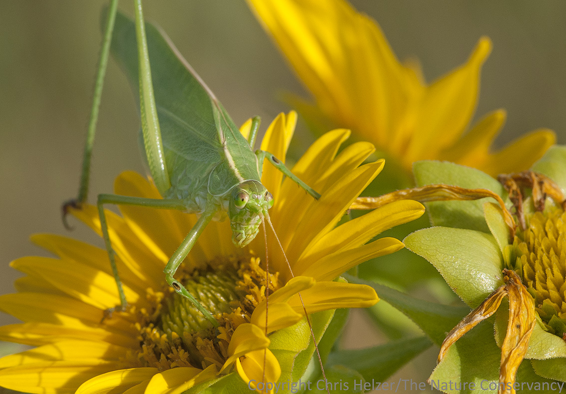 Stiff sunflower was not the only species being targeted. Maximilian sunflowers (Helianthus maximiliani) were also dangling… This photo was taken just a few minutes after the first.