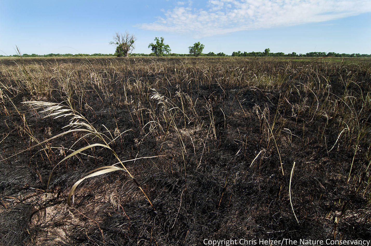 This growing season burn left behind numerous unburned patches, providing refuges for invertebrates and other small animals.