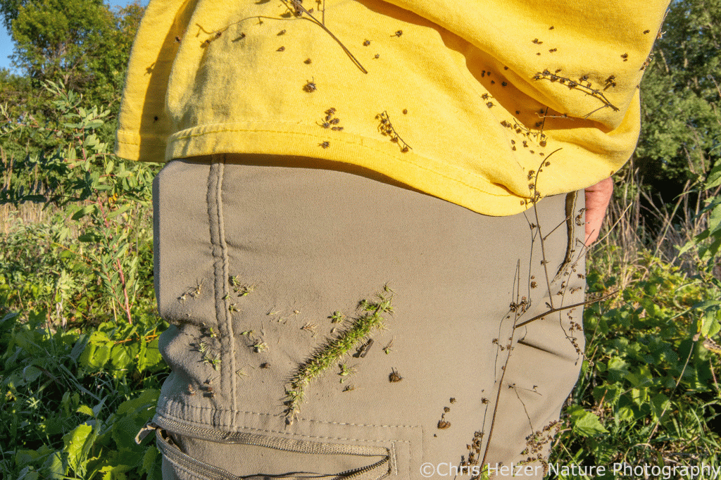 You’ll have to pull those whatever-they’re-called off later, of course, because any that make it to the laundry will still be attached when the shirt comes out of the dryer. Except, obviously, for a few that will detach and re-attach in fun, surprising places on other pieces of clothing. That’s ok, picking tick clover seeds off a shirt later tonight will give you something to do while you’re browsing through the internet for new pants.