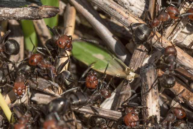 Why were all these insects hanging out on the snow? The air temperature was in the mid-50’s (Fahrenheit), so it’s not surprising they were active, but why hang out on a big pile of ice crystals instead of somewhere warmer? Were they looking for something? Taking advantage of the sun exposure, even though it made their feet cold? I don’t know.