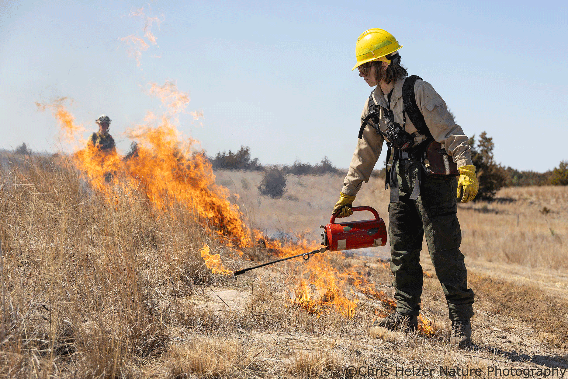 Hubbard Fellows are involved in nearly everything The Nature Conservancy does in Nebraska over the course of their 12-month fellowship. They spend a lot of time doing land stewardship – getting the training they need along the way – but also attend board meetings, engage in strategic discussions, and help with fundraising and marketing work. Fellows get to meet and work with researchers, lead groups of volunteers, and talk about conservation to the public.