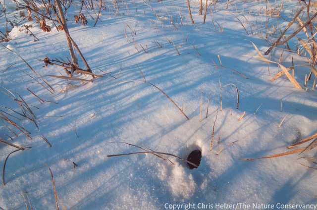 As I said at the beginning of this post, I’m no expert on winter survival, especially by birds and small mammals. I do, though, enjoy trying to figure out what I can learn through observation, and snow is really helpful in that venture. Last week’s snow is melting fast now, but I’m hoping for a few more chances to explore later this winter. If anyone can help me interpret what I saw in these photos, I’d sure appreciate it!