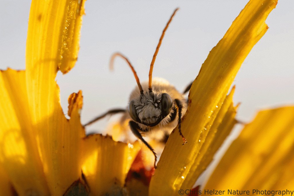 One morning, I stopped at our family prairie well before sunrise. As I was scouting around, waiting for the sun, I saw a few bees clustered together on a flower. That’s not unusual, but I mentally noted the location in case I wanted to come back after the light improved. Shortly after that, I saw an even bigger group of bees, and then another. I’d never seen so many longhorn bees on the same flower before, and I saw similar groupings on at least 4 or 5 flowers.