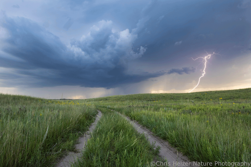One evening, thunderstorms started forming off to the west of the Niobrara Valley Preserve and tracked northeast, providing a prolonged lightning show that kept just enough distance from the Preserve that I could watch and photograph it safely. After dark, the storms did pass directly over us, but I was safely in bed by then.