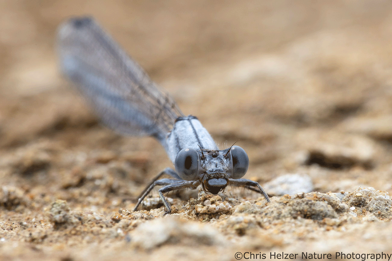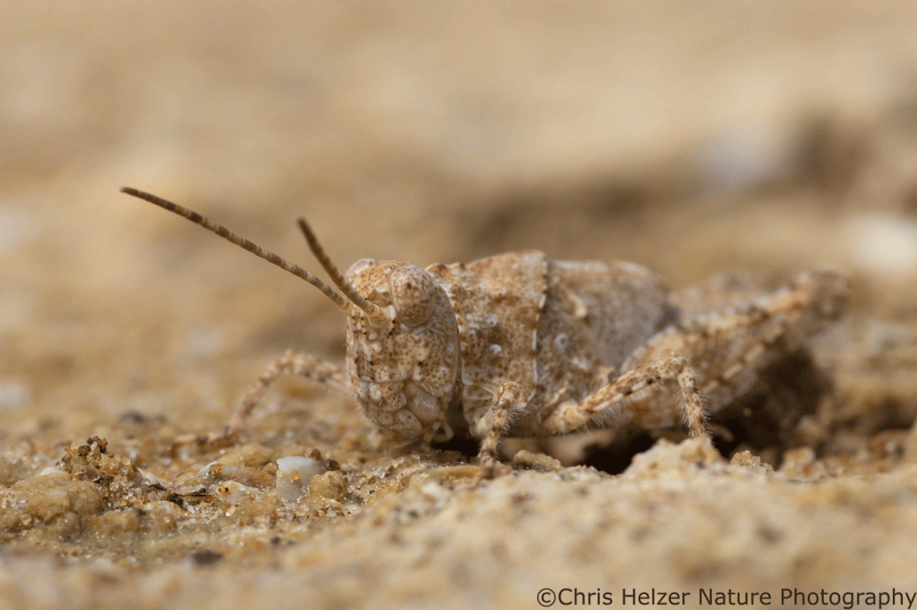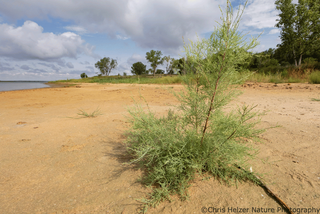 A juvenile wolf spider on the beach of Wilson Lake in Kansas.A big sandy tiger beetle on the beach. There were LOTS of these.This is what the lakeshore looked like (featuring an invasive salt cedar tree in the foreground). Now just imagine me on my belly and boaters, dog walkers, and others passing by.A band-winged grasshopper, one of several similar species that were extraordinarily well-camouflaged.Damselfly.A robber fly on an old common reed rhizome.