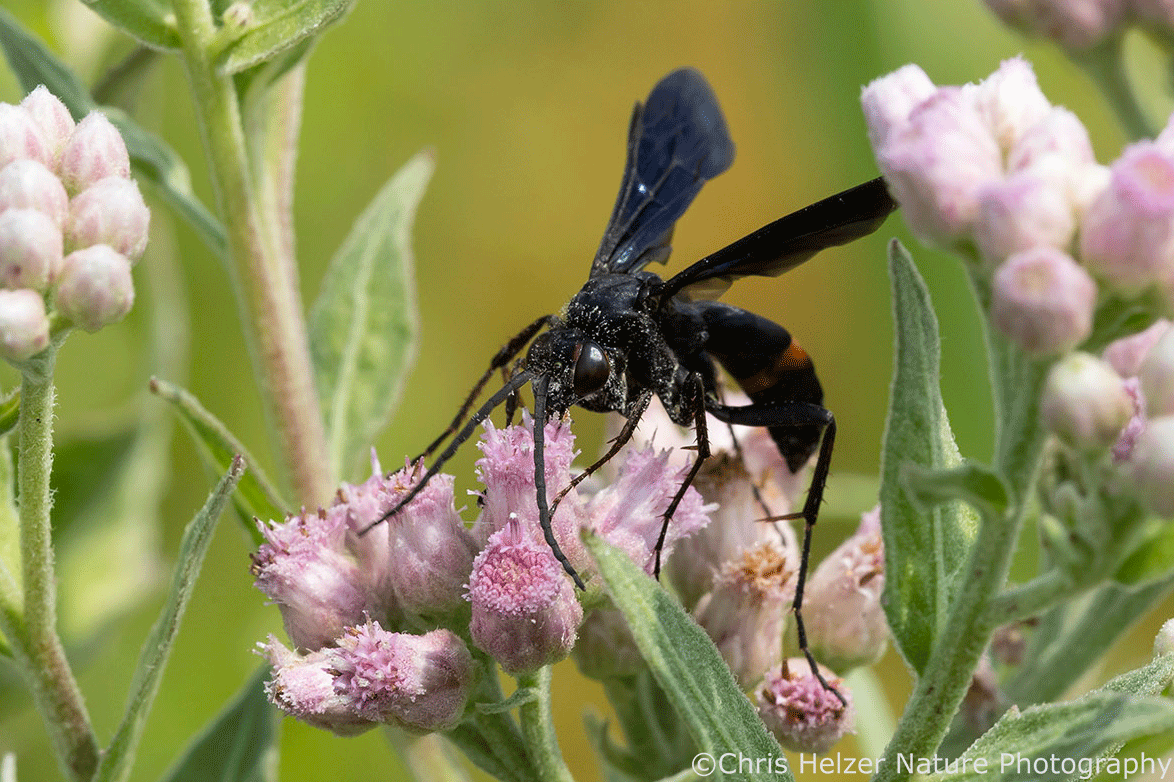 A wasp feeding on the nectar of marsh-fleabane (Pluchea odorata) on the edge of the beach of Wilson Lake.