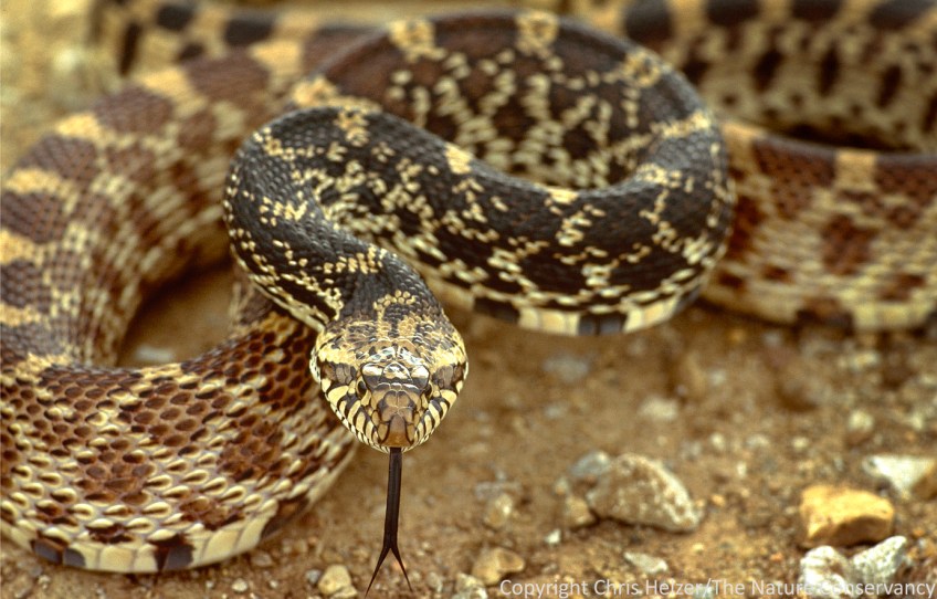 WOPA051101_D007 Published March 15, 2013 at 1381 × 884 in WOPA051101_D007 (INTERNAL RIGHTS ONLY, CREDIT IS MANDATORY) Bull snake. Pawnee County, Nebraska. On gravel road. Photo Credit: © Chris Helzer